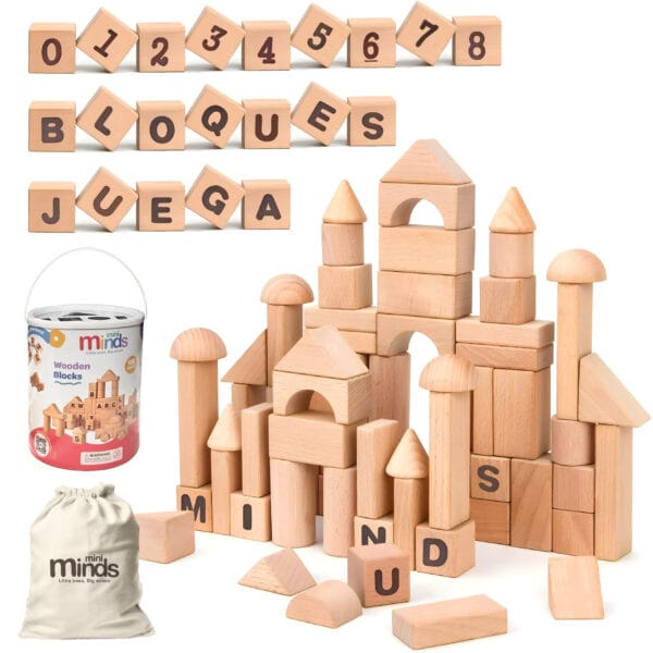 - Madera Solida Premium: Nuestros bloques de Madera estan varnizados y tienen bordes redondeados para asegurar la seguridad de los pequeños – BPA Free . Son piezas livianas para que los niños las puedan manipular sin problemas.